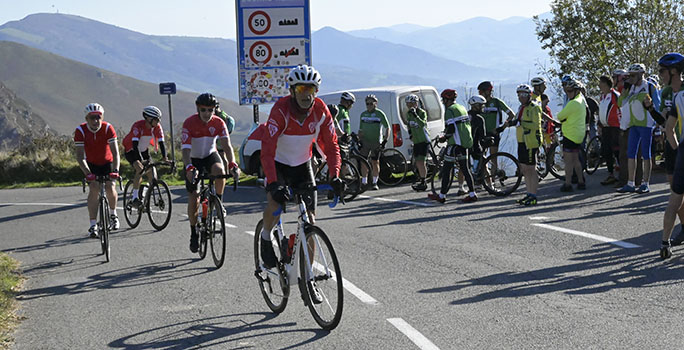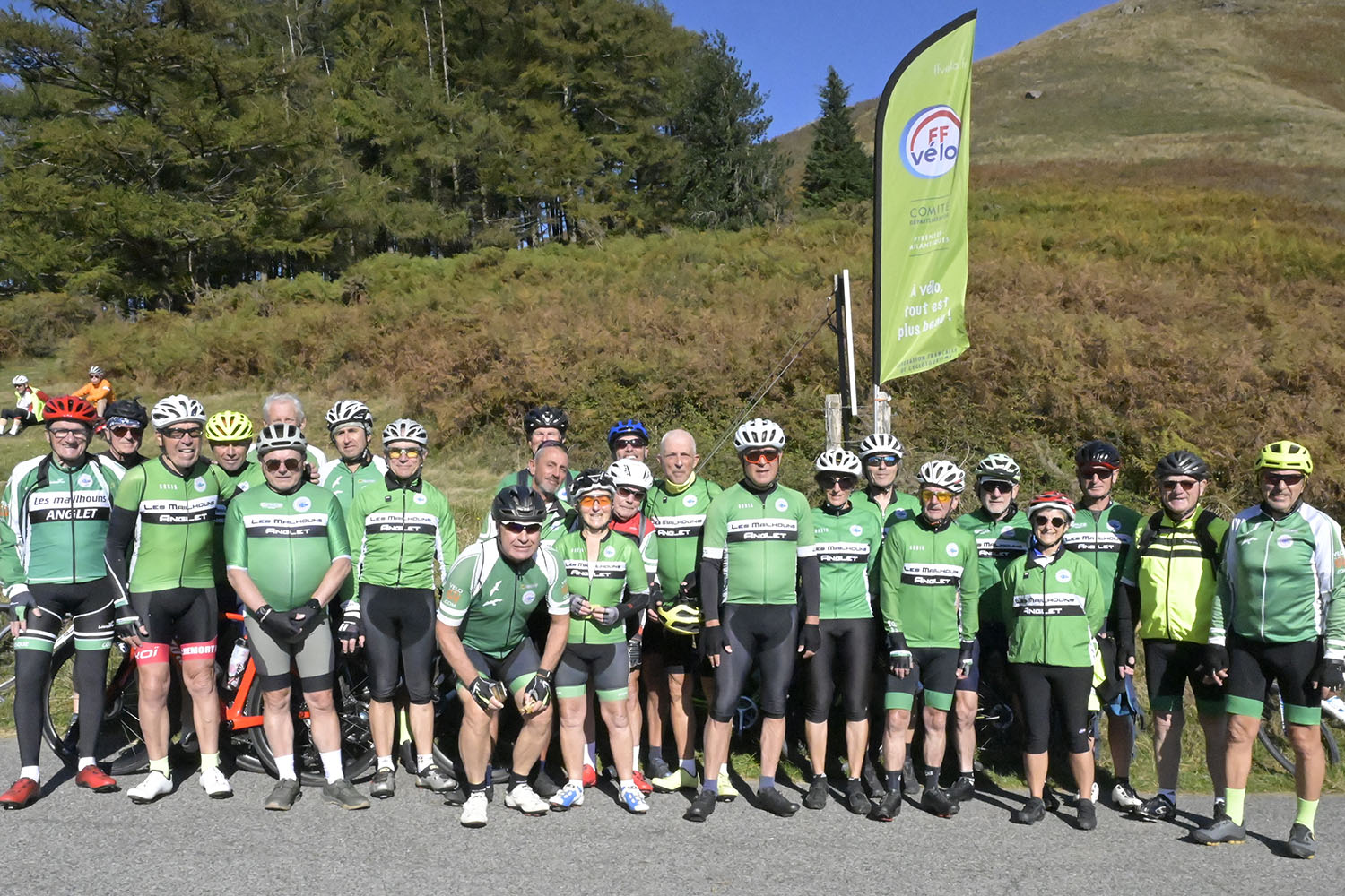 C’est ainsi que de bon matin, et sous une fraîcheur marquée, de nombreux cyclotouristes se sont élancés depuis Baïgorry pour la longue montée de 9km et atteindre le sommet du Col d’Ispéguy (alt 672m), point de rassemblement de la journée. Tous ont pu profiter de beaux points de vue sur la vallée et les flancs de montagne qui commençaient à se parer de belles couleurs automnales.