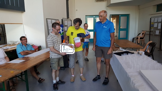 Michel PELISSIER, correspondant des fêlés du Grand Colombier nous a dressé un bilan de sa confrérie. Tous les membres méritent bien le nom de fêlés… Ça fera prochainement l’objet d’un article où cette confrérie vous sera présentée. Le club des fêlés a bien fait les choses, puisqu’à 18 h, ils ont offert à tous les présents sur la cyclomontagnarde et aux membres de leur confrérie le verre de l’amitié (boisson locale pétillante) avec la non moins connue tarte au sucre de la région du Bugey.