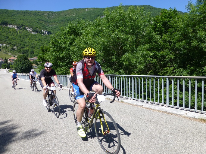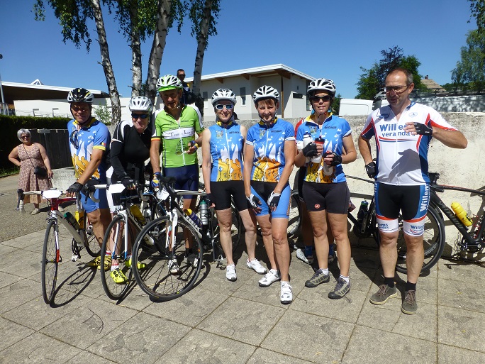 Patrick, le coordinateur et ses vingt-cinq bénévoles, m’ont fait un petit et rapide historique ce cette cyclo, il s’agit de la quatorzième édition, les trois premières était organisées à Bellegarde, puis la suite a été prise par le club des Fêlés du Grand Colombier. Il est a noté la présence de quelques fidèles au Bugey depuis sa première édition. Ils sont accompagnés cette année d’une vingtaine de belges. Notre ami Patrick constate une fois encore que peu de régionaux sont présents, la plupart des participants viennent de toute la France.
