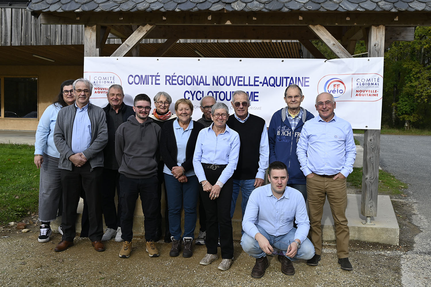 Elisabeth PICAUT, avec l’équipe du Comité Régional de Cyclotourisme de Nouvelle-Aquitaine