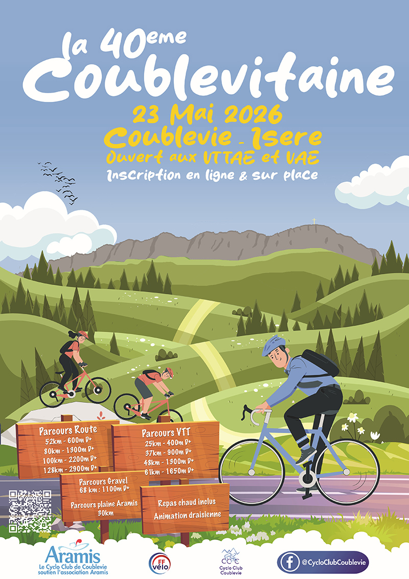 Pour plus d’informations ou pour vous inscrire, contactez l’organisation à l’adresse suivante : coublevitaine@cyclo-coublevie.org.