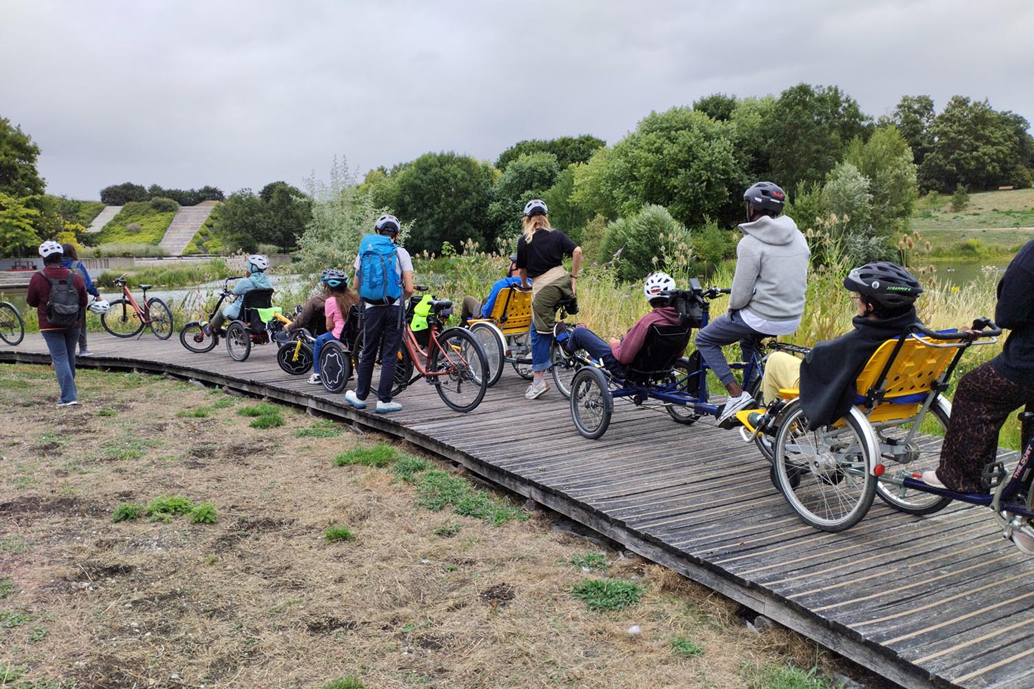 - Essais gratuits de vélos adaptés (tandems, tricycles, vélos enfants et adultes) sur une zone dédiée.