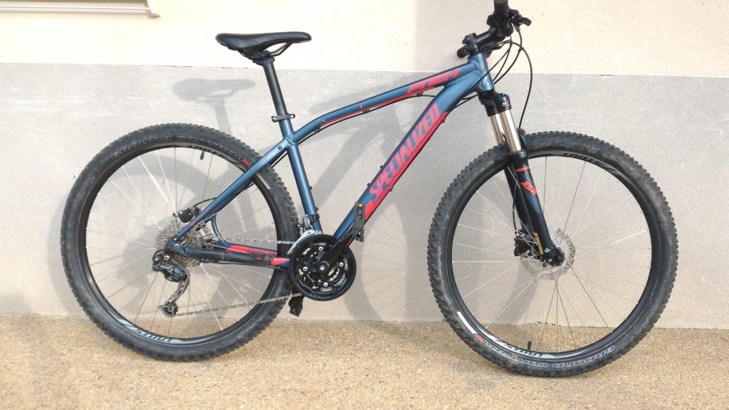 Matériau : Aluminium | Specialized A1 Premium Aluminum, Sport Trail 650b Geometry, butted tube sets, externally relieved head tube, forged dropouts, reinforced disc mount, replaceable alloy derailleur hanger