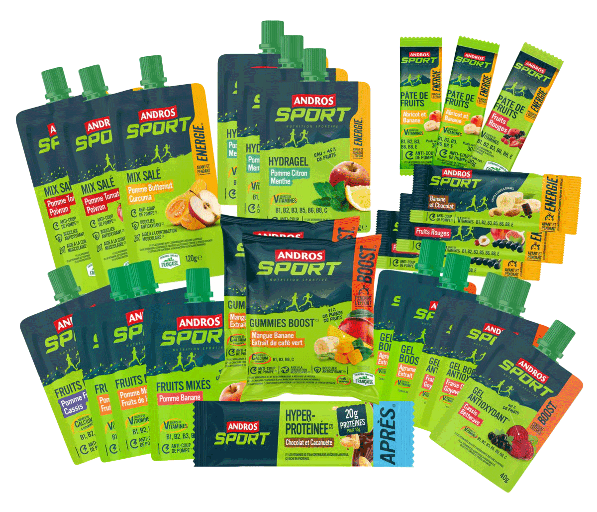 Les produits sont disponibles en grandes surfaces, magasins de sport, et sur andros-sport.fr.