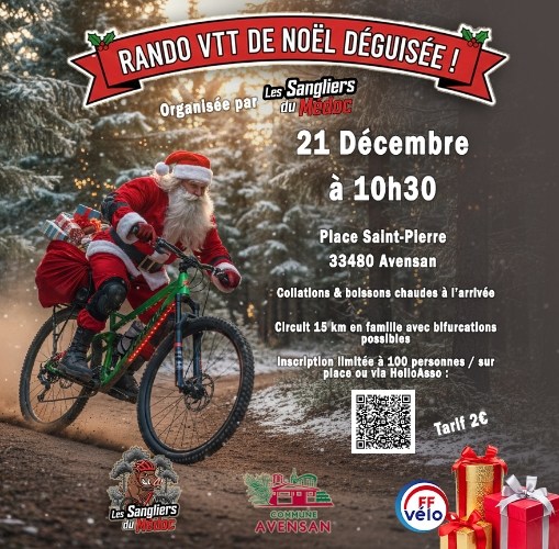 Les Sangliers du Médoc vous proposent une randonnée VTT déguisée sur le thème de Noël. L’occasion idéale d’allier plaisir du vélo, convivialité et magie des fêtes.