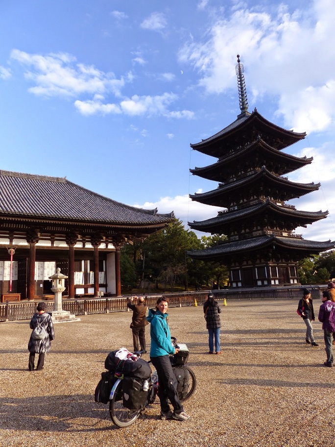 Grâce à nos guides, nous sommes toujours arrivés à bon port, c’est à dire les anciennes capitales du Japon.Tout d’abord Nara, la première capitale du Japon avec pleins de trésors historiques et son parc aux daims… (qui ont réussis à nous piquer un sac de mandarines pourtant fermé dans une sacoche… Fallait pas bivouaquer dans le parc…)Ensuite Kyoto. Avec ses deux milles temples, ses palais ses jardins, son architecture, Kyoto est considérée comme le centre culturel du Japon. Nous y passons 4 jours.