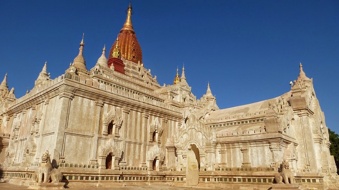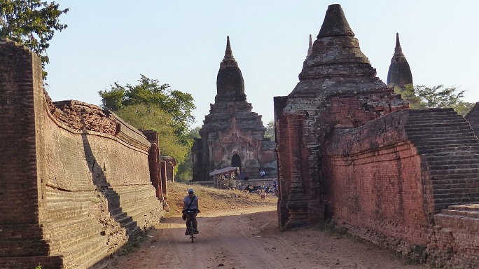 Notre deuxième étape touristique. Situé un peu plus au nord, nous faisons le trajet depuis Kyaikto en bus de nuit pour ne pas pédaler dans cette plaine surchauffée et qui ne nous semble pas la plus intéressante.