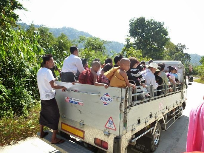 En 2006, alors que nous voulions rejoindre la Thaïlande depuis l’Inde, la Birmanie nous avait été interdite pour cause de frontières terrestres fermées. Cette fois ci, 4 frontières sont ouvertes avec la Thaïlande. Nous prendrons donc une petite revanche en allant y faire un tour. Départ de Bangkok en bus pour Mae-Sot. Nous voyageons légers. Nos affaires d’hiver étant restées en pension à l’auberge de Bangkok.