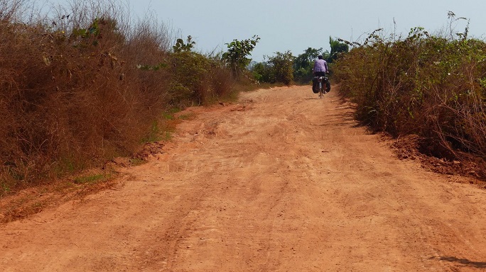 Par contre la route ne s’est pas améliorée et après 40 kilomètres de descente sans trop touchés aux freins, nous sommes bien secoués. Nous avons doublés tous les camions, toutes les charrettes à bœufs, tous les deux roues… Résultat, cette fois ci c’est le porte bagage avant du vélo de Patricia qui pétè une soudure… Réparé très rapidement par un des nombreux ateliers du bord de route. Le soudeur, plus habitué aux arbres de transmission, nous fera un joli travail, refusant toute rétribution. Merci a lui.