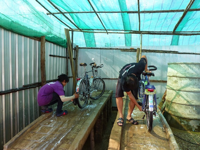 Coté Thaïlandais, nous faisons nettoyer les vélos. Les bonhommes attendrons encore un peu.