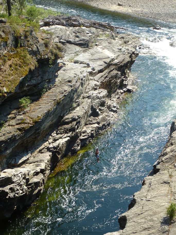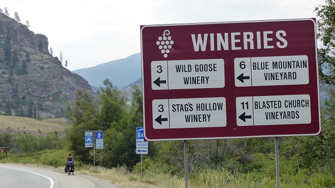Avec Penticton, fini la disette des fruits. Ici, c’est la région des vergers et des vignes. Cette région semi désertique avec un climat chaud s’y prête à merveille. C’est la route des vins que nous suivons. Tous les kilomètres il y a les caves (Wineries), ou l’on peut déguster de très bon vins. Pour notre part, nous nous attarderons plus facilement sur les vergers qui en cette période débordent de fruits : cerises, pêches, abricots. Et dire que nous pensions avoir loupé la saison… Nous nous gavons de ces fruits qui nous ont tant manqués….