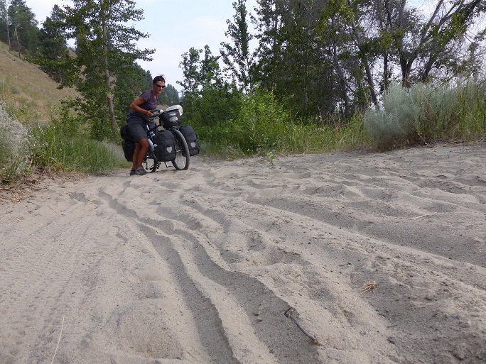 En dix jours, nous ne rencontrerons que deux autres cyclistes sur ce parcours. Lee Anna et Laurie. En deux fois, arrêtées au bord de la piste avec un pneu crevé…et bien embêtées pour réparer. La chance du cycliste. Nous nous sommes croisés à chaque fois au bon moment…. Du coup, nous terminons ensemble jusqu’à Penticton, fin de la KVR
