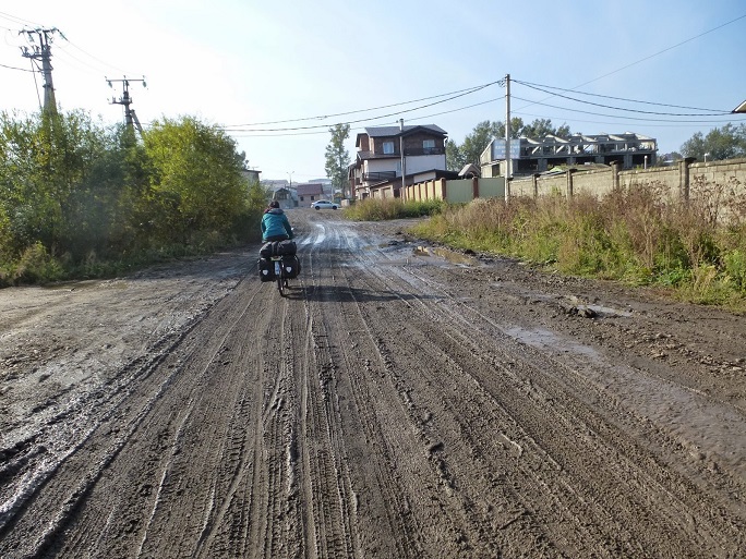 Depuis notre arrivée en Russie, il pleut quotidiennement. Du coup, les petites routes que nous avions prévues sont impraticables, car devenues des bourbiers. Les routes secondaires en Russie ne sont pas goudronnées… Nous aurions dû prendre le train. De ce fait, nous roulons sur des axes à plus forte circulation. Ce qui nous oblige à pratiquer les bas côtés, qui ne sont que boue. Cela devient difficile à gérer. Heureusement, nous traversons de magnifiques villes et villages, trouvons des hébergements pour passer les nuits au sec, (les champs étant devenus impraticables au camping). Petit à petit, nous « apprenons » la Russie. Partout, nous rencontrons des gens sympathiques. Les vendeurs sur le bord de la route et les routiers sont pour le moment nos seuls contacts avec la population, mais déjà nos a priori volent en éclats. Nous avions l’image du Russe un peu « brut » et bourru. (Ils ont toujours le rôle des méchants dans les films….) Il n’en est rien. Nous découvrons des personnes curieuses, ayant envie de communiquer, agréables et généreuses.
