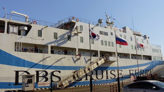 Arrivés à Vladivostok, nous remontons les vélos, assaillis par des groupes de Chinois qui se bousculent pour nous prendre, sans complexe, en photos. Quitte à bousculer nos pièces de vélos en instance d’être assemblées de nouveau. Ce qui ne me (Christian) plaît pas du tout, mais alors pas du tout… Nous passons deux jours à visiter la ville, en faisant des pauses « thés et gâteaux » avec notre amie Belge et réservons nos billets pour une traversée en ferry.