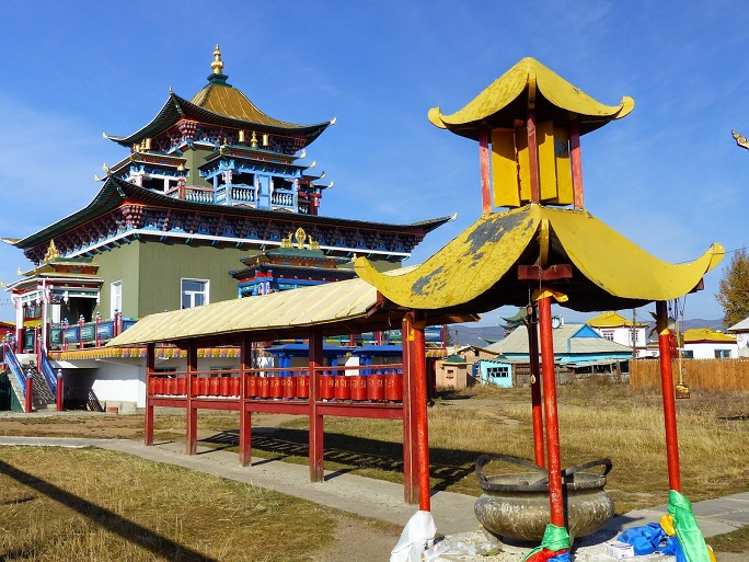 que nous pourrons admirer ces temples toujours aussi colorés, écouter les moines psalmodier, tapant sur leurs tambours ou faisant tinter des clochettes quand ce ne sont pas des cymbales. Quelques tours de rouleaux à prières et de roues plus loin, nous sommes de retour à Ulan Ude.