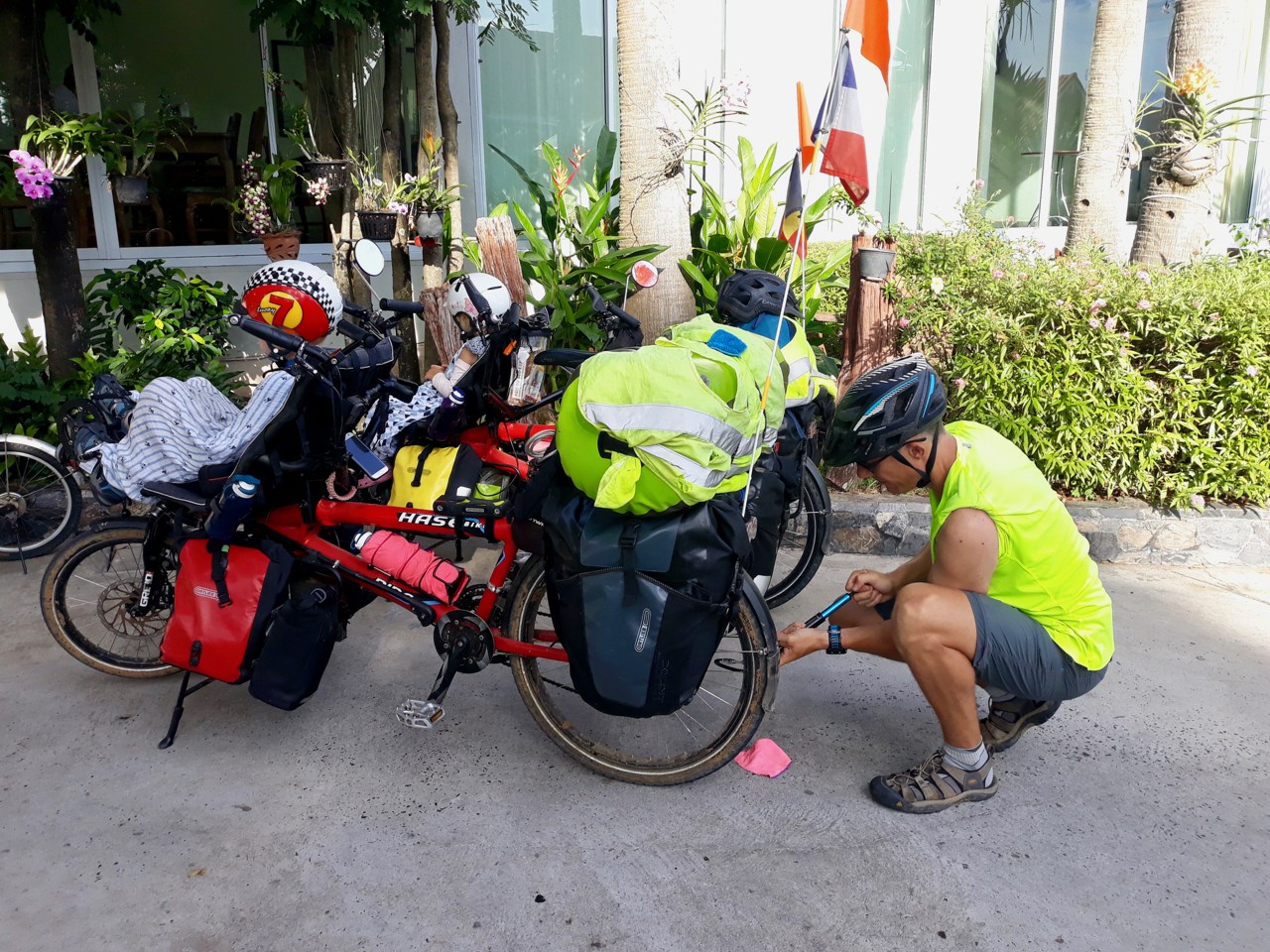 Elle m’explique ensuite que la police est là car des personnes l’ont appelée, pensant que Soline n’était pas ma fille et que je l’avais kidnappée… J’appelle Damien, qui arrive vite et le policier repart rapidement, comprenant qu’en effet c’est bien notre enfant. Soline finit par s’apaiser et nous repartons dans le calme jusqu’à la nouvelle guesthouse.