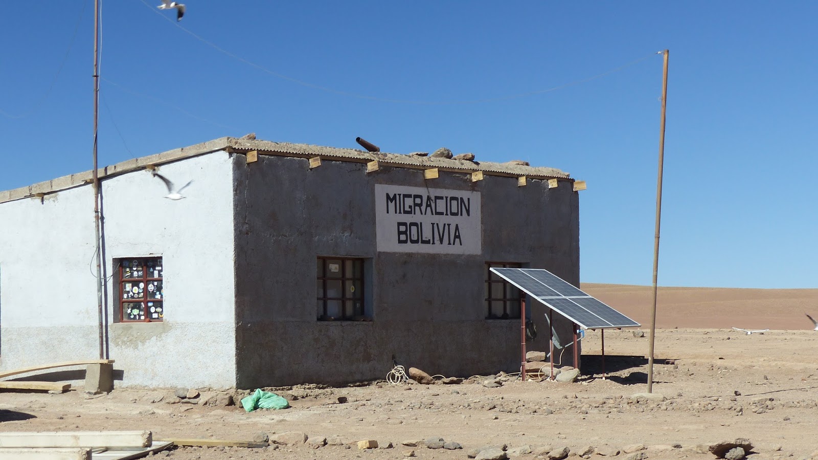 Le poste de douane coté Chilien se trouve à San Pedro d’Atacama. (Le tout récent et moderne poste située au Paso Hito Cajon n’ouvrira sûrement jamais ses portes, le gouvernement s’étant rendu compte, un peu tard, qu’apporter l’électricité, l’eau et les hommes à 4 600 mètres allait lui coûter un peu trop d’argent…).