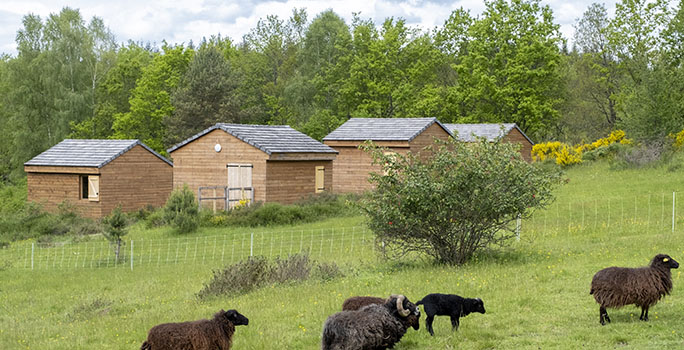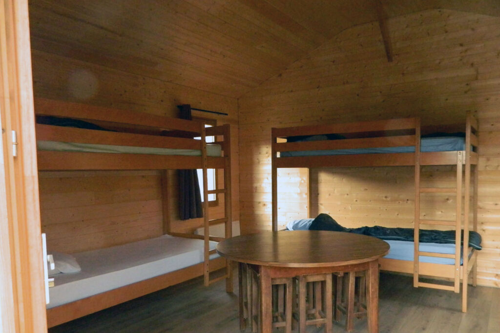 - 7 chalets en bois équipés, d’une capacité de 6 couchages chacun, pour un confort optimal après une journée de pédalage.