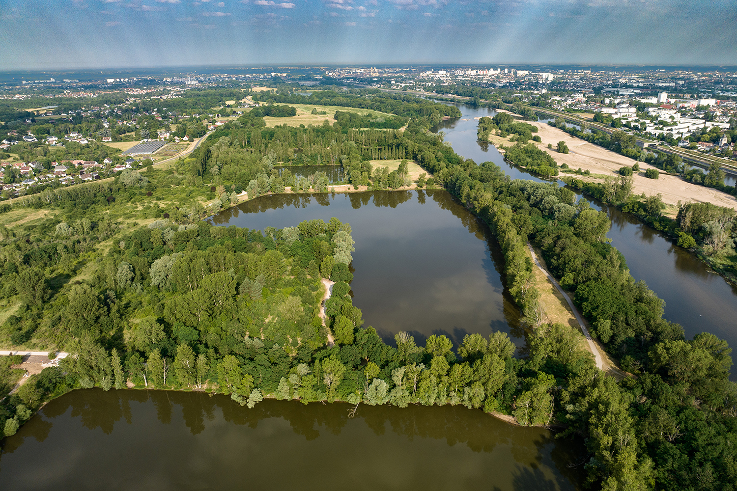 Au départ de la base de loisirs de l’Île Charlemagne, ce circuit vous plonge dans une ambiance paisible et dépaysante. L’itinéraire longe la Loire sur les levées, offrant de magnifiques panoramas sur le fleuve et ses îlots sauvages. Vous traverserez ensuite les grands espaces du Parc de Loire, entre prairies ouvertes, zones humides et chemins ombragés.