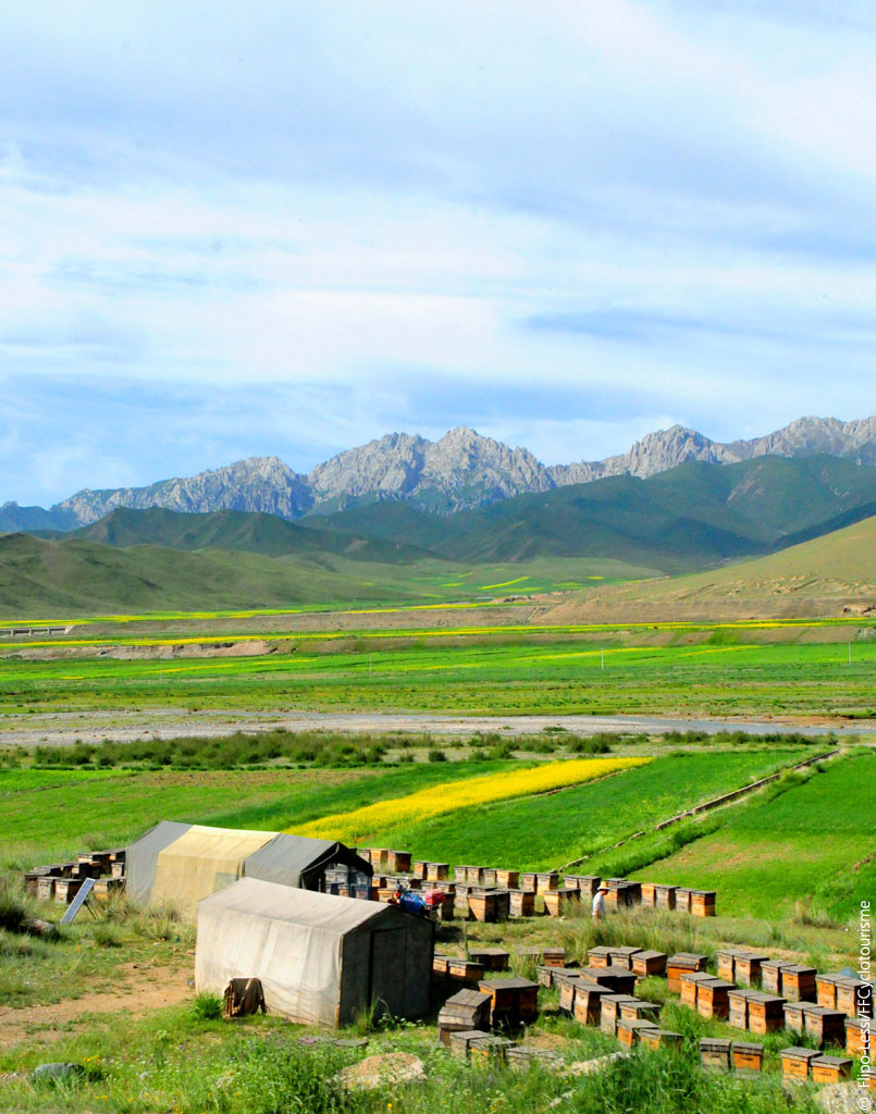 « Après la beauté des sites naturels que nous avons traversés au Khirghizistan, je ne m’attendais pas à trouver avant Lanzhou des paysages de haute montagne, certes très différents, mais également très beaux et riches en couleurs, avec ces cultures variées.