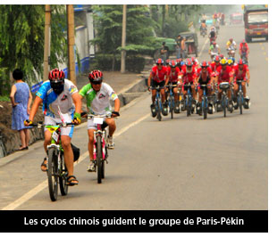 Indépendamment de notre rôle spécifique, nous avons pu sans problème nous intégrer facilement dans l’équipe d’encadrement. Nous avons notamment, parlant Anglais, servi d’interprète à la logistique, aimant conduire, au cas où, nous avons même obtenu notre permis de conduire poids lourd Chinois ! et accessoirement fait baisser la moyenne d’âge du groupe (j’ai moi-même 26 ans et Enrique 27 ans).Pour moi cette aventure, à mon âge, est une expérience imprévue et inoubliable et demain j’envisage sérieusement…d’adhérer à la Fédération française de cyclotourisme.