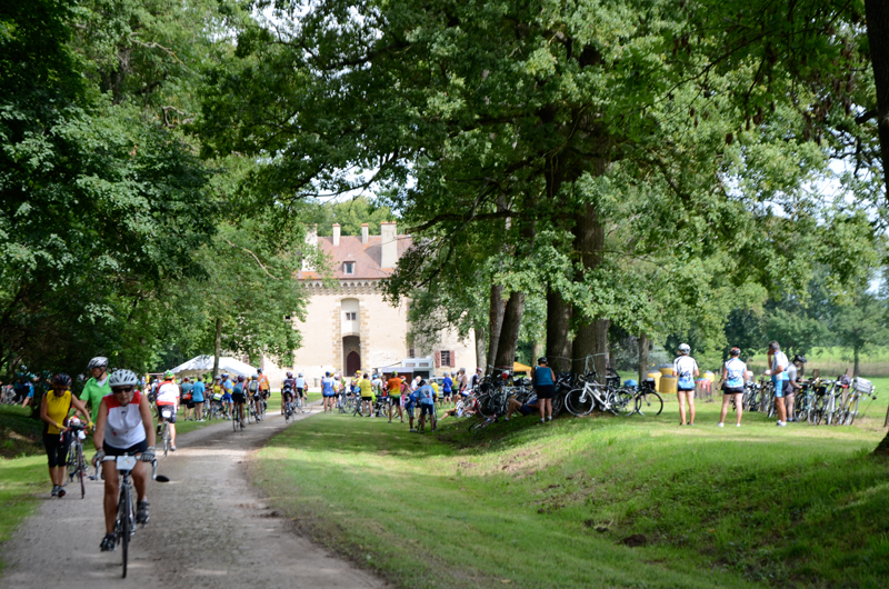 Cette journée de balades proposait deux départs différents pour plus de découvertes ! D’abord, depuis Saint-Pourçain-sur-Sioule, les cyclotouristes ont sillonné les petites routes vallonnées du bocage. Châteaux et maisons fortes y sont visibles dans presque tous les villages. Et puis, à partir de Villefranche-d’Allier, c’était une immersion totale en forêt de Tronçais, considérée comme la plus belle chênaie d’Europe. À l’origine, cette forêt était destinée à fournir la construction des navires de la flotte française… c’était à l’époque de Colbert. Aujourd’hui, ces bois servent à la fabrication des fûts pour les plus grands vins de Bordeaux.